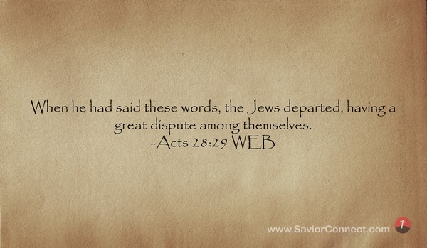 When he had said these words, the Jews departed, having a great dispute among themselves. -Acts 28:29 WEB