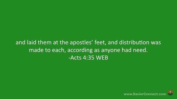 and laid them at the apostles’ feet, and distribution was made to each, according as anyone had need. -Acts 4:35 WEB