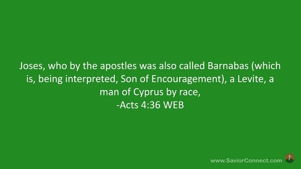 Joses, who by the apostles was also called Barnabas (which is, being interpreted, Son of Encouragement), a Levite, a man of Cyprus by race, -Acts 4:36 WEB