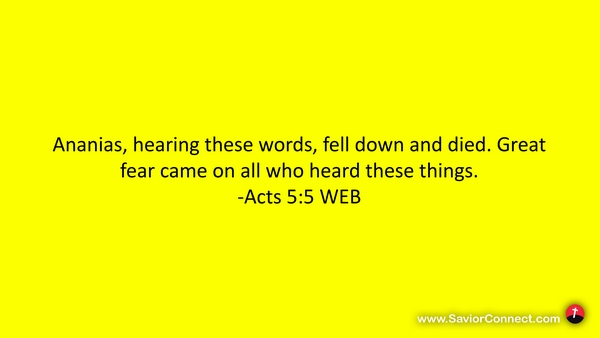 Ananias, hearing these words, fell down and died. Great fear came on all who heard these things. -Acts 5:5 WEB