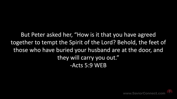 But Peter asked her, “How is it that you have agreed together to tempt the Spirit of the Lord? Behold, the feet of those who have buried your husband are at the door, and they will carry you out.” -Acts 5:9 WEB
