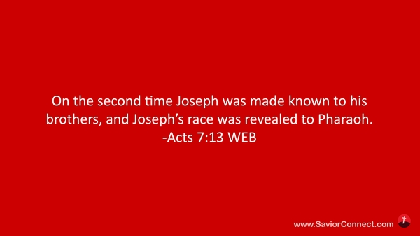 On the second time Joseph was made known to his brothers, and Joseph’s race was revealed to Pharaoh. -Acts 7:13 WEB