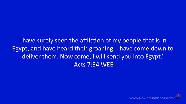 I have surely seen the affliction of my people that is in Egypt, and have heard their groaning. I have come down to deliver them. Now come, I will send you into Egypt.’ -Acts 7:34 WEB