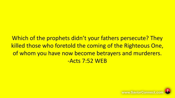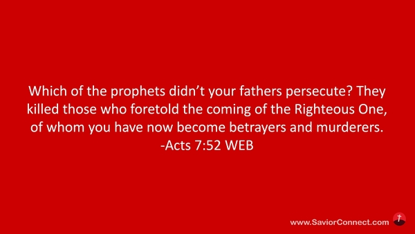 Which of the prophets didn’t your fathers persecute? They killed those who foretold the coming of the Righteous One, of whom you have now become betrayers and murderers. -Acts 7:52 WEB