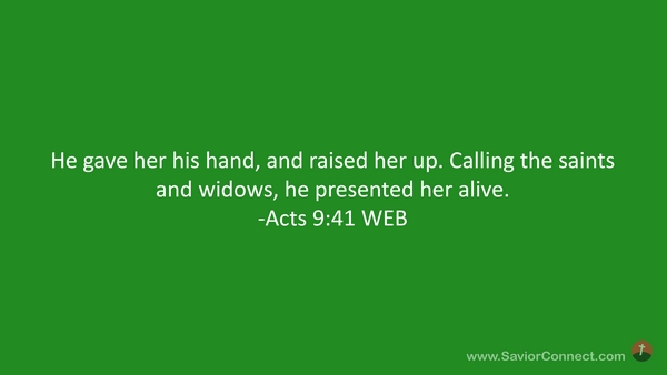 He gave her his hand, and raised her up. Calling the saints and widows, he presented her alive. -Acts 9:41 WEB