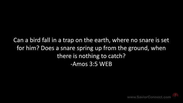Can a bird fall in a trap on the earth, where no snare is set for him? Does a snare spring up from the ground, when there is nothing to catch? -Amos 3:5 WEB