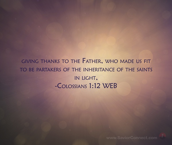 giving thanks to the Father, who made us fit to be partakers of the inheritance of the saints in light, -Colossians 1:12 WEB