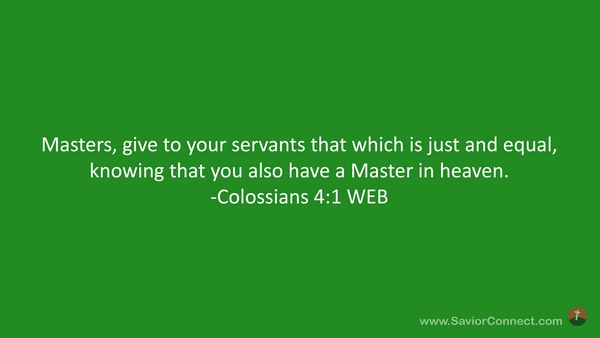 Masters, give to your servants that which is just and equal, knowing that you also have a Master in heaven. -Colossians 4:1 WEB