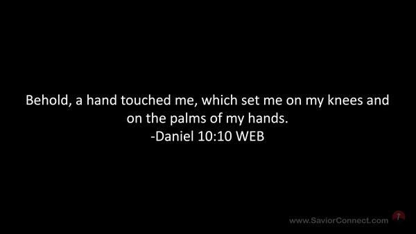 Behold, a hand touched me, which set me on my knees and on the palms of my hands. -Daniel 10:10 WEB
