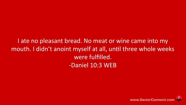 I ate no pleasant bread. No meat or wine came into my mouth. I didn’t anoint myself at all, until three whole weeks were fulfilled. -Daniel 10:3 WEB