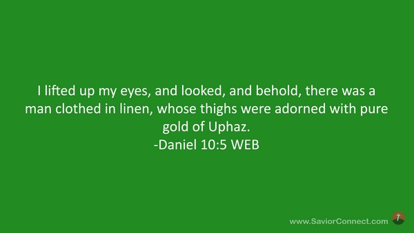 I lifted up my eyes, and looked, and behold, there was a man clothed in linen, whose thighs were adorned with pure gold of Uphaz. -Daniel 10:5 WEB