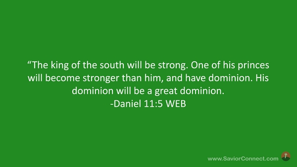“The king of the south will be strong. One of his princes will become stronger than him, and have dominion. His dominion will be a great dominion. -Daniel 11:5 WEB