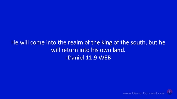 He will come into the realm of the king of the south, but he will return into his own land. -Daniel 11:9 WEB