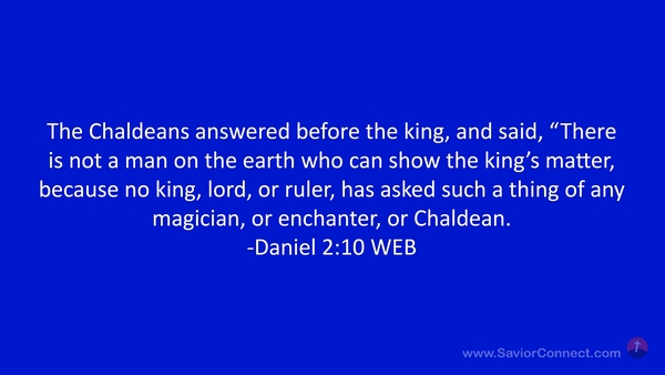 The Chaldeans answered before the king, and said, “There is not a man on the earth who can show the king’s matter, because no king, lord, or ruler, has asked such a thing of any magician, or enchanter, or Chaldean. -Daniel 2:10 WEB