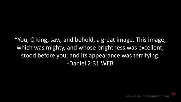 “You, O king, saw, and behold, a great image. This image, which was mighty, and whose brightness was excellent, stood before you; and its appearance was terrifying. -Daniel 2:31 WEB