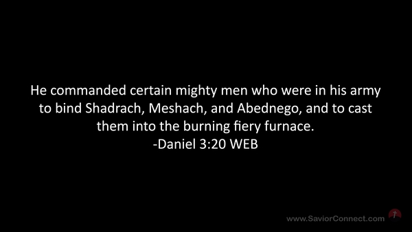 He commanded certain mighty men who were in his army to bind Shadrach, Meshach, and Abednego, and to cast them into the burning fiery furnace. -Daniel 3:20 WEB