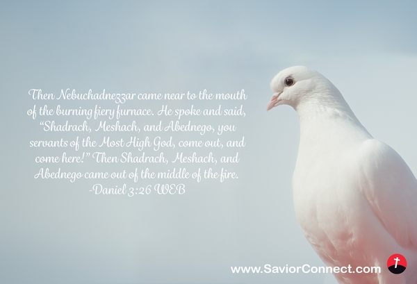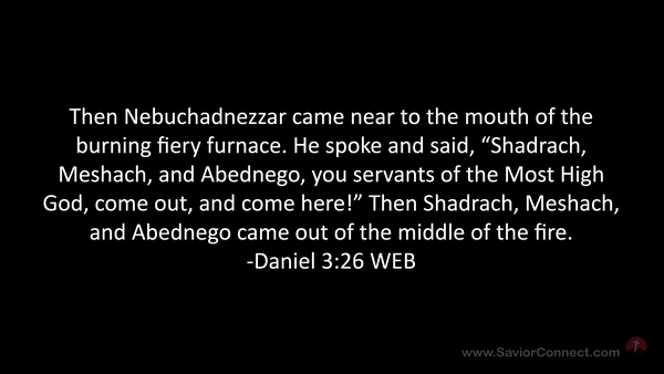 Then Nebuchadnezzar came near to the mouth of the burning fiery furnace. He spoke and said, “Shadrach, Meshach, and Abednego, you servants of the Most High God, come out, and come here!” Then Shadrach, Meshach, and Abednego came out of the middle of the fire. -Daniel 3:26 WEB