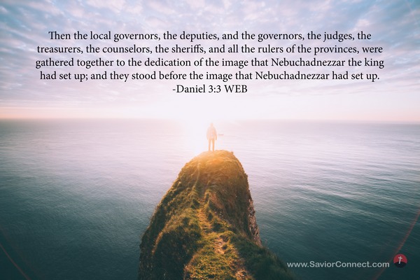 Then the local governors, the deputies, and the governors, the judges, the treasurers, the counselors, the sheriffs, and all the rulers of the provinces, were gathered together to the dedication of the image that Nebuchadnezzar the king had set up; and they stood before the image that Nebuchadnezzar had set up. -Daniel 3:3 WEB