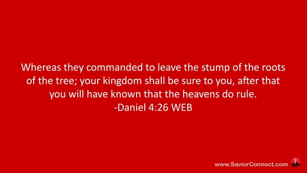 Whereas they commanded to leave the stump of the roots of the tree; your kingdom shall be sure to you, after that you will have known that the heavens do rule. -Daniel 4:26 WEB