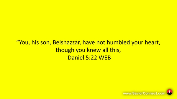 “You, his son, Belshazzar, have not humbled your heart, though you knew all this, -Daniel 5:22 WEB