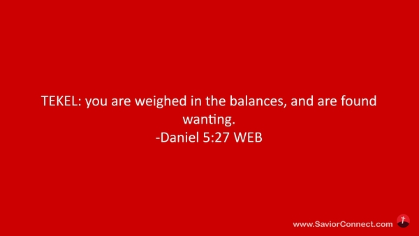TEKEL: you are weighed in the balances, and are found wanting. -Daniel 5:27 WEB