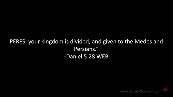 PERES: your kingdom is divided, and given to the Medes and Persians.” -Daniel 5:28 WEB