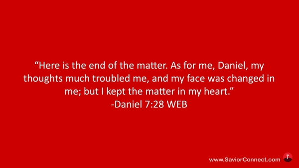 “Here is the end of the matter. As for me, Daniel, my thoughts much troubled me, and my face was changed in me; but I kept the matter in my heart.” -Daniel 7:28 WEB