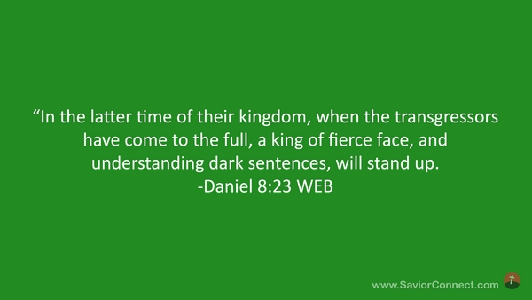 “In the latter time of their kingdom, when the transgressors have come to the full, a king of fierce face, and understanding dark sentences, will stand up. -Daniel 8:23 WEB