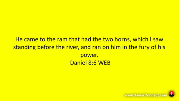 He came to the ram that had the two horns, which I saw standing before the river, and ran on him in the fury of his power. -Daniel 8:6 WEB