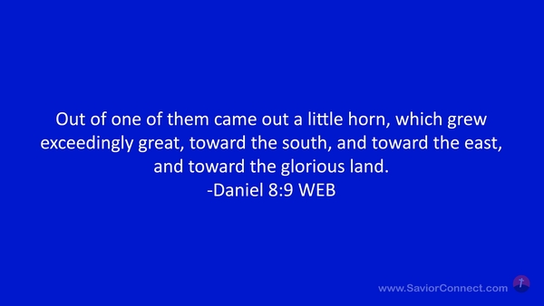 Out of one of them came out a little horn, which grew exceedingly great, toward the south, and toward the east, and toward the glorious land. -Daniel 8:9 WEB