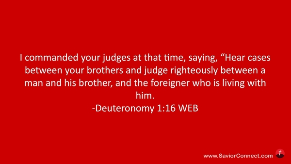 I commanded your judges at that time, saying, “Hear cases between your brothers and judge righteously between a man and his brother, and the foreigner who is living with him. -Deuteronomy 1:16 WEB