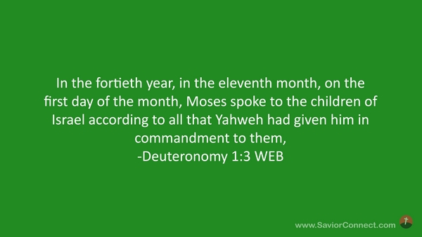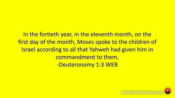 In the fortieth year, in the eleventh month, on the first day of the month, Moses spoke to the children of Israel according to all that Yahweh had given him in commandment to them, -Deuteronomy 1:3 WEB