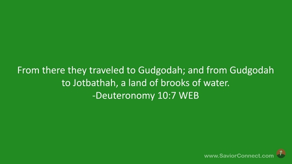 From there they traveled to Gudgodah; and from Gudgodah to Jotbathah, a land of brooks of water. -Deuteronomy 10:7 WEB