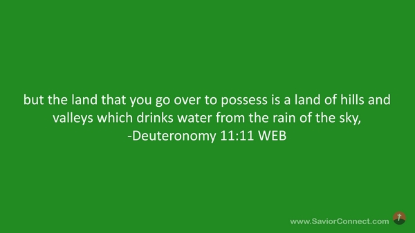 but the land that you go over to possess is a land of hills and valleys which drinks water from the rain of the sky, -Deuteronomy 11:11 WEB