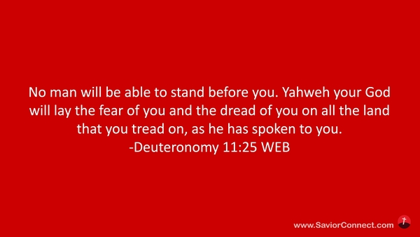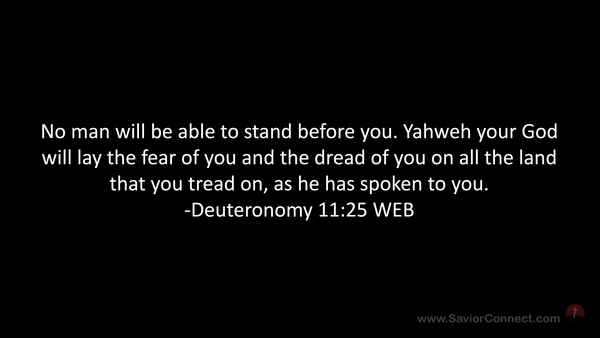 No man will be able to stand before you. Yahweh your God will lay the fear of you and the dread of you on all the land that you tread on, as he has spoken to you. -Deuteronomy 11:25 WEB