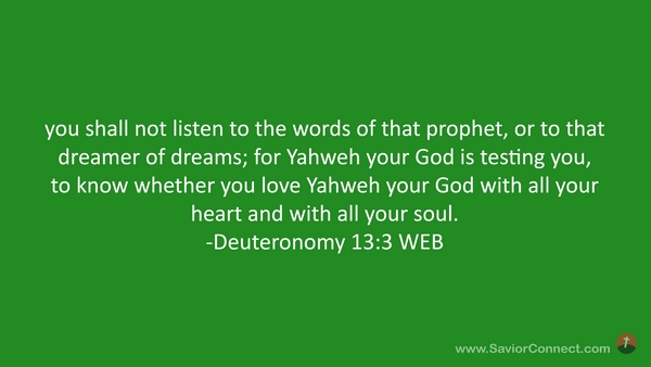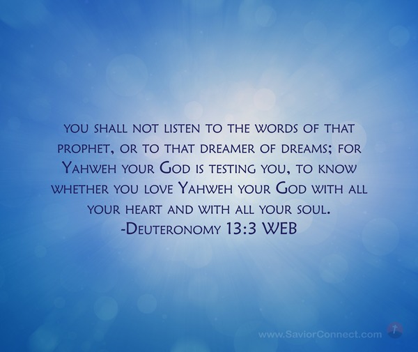 you shall not listen to the words of that prophet, or to that dreamer of dreams; for Yahweh your God is testing you, to know whether you love Yahweh your God with all your heart and with all your soul. -Deuteronomy 13:3 WEB