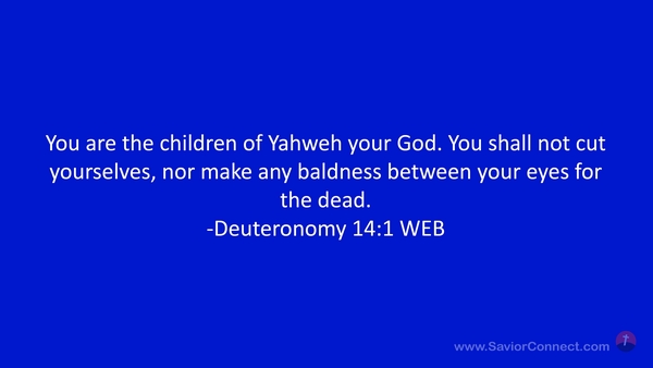 You are the children of Yahweh your God. You shall not cut yourselves, nor make any baldness between your eyes for the dead. -Deuteronomy 14:1 WEB