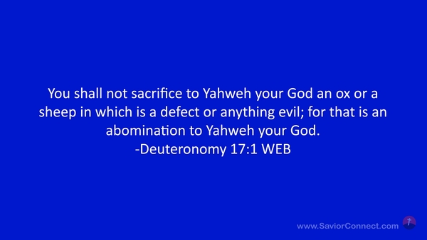 You shall not sacrifice to Yahweh your God an ox or a sheep in which is a defect or anything evil; for that is an abomination to Yahweh your God. -Deuteronomy 17:1 WEB