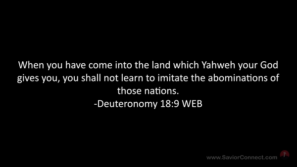 When you have come into the land which Yahweh your God gives you, you shall not learn to imitate the abominations of those nations. -Deuteronomy 18:9 WEB