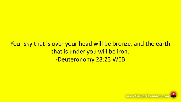 Your sky that is over your head will be bronze, and the earth that is under you will be iron. -Deuteronomy 28:23 WEB