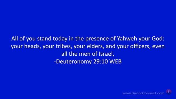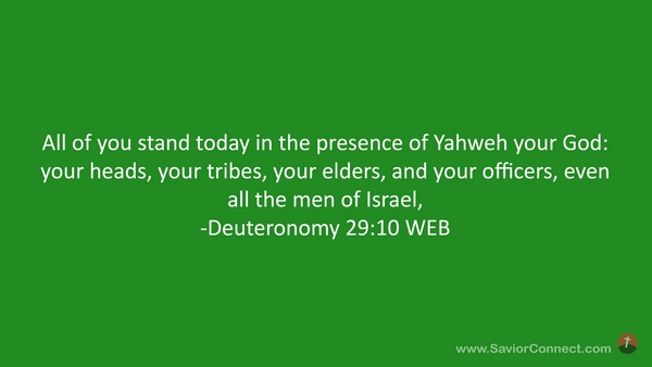 All of you stand today in the presence of Yahweh your God: your heads, your tribes, your elders, and your officers, even all the men of Israel, -Deuteronomy 29:10 WEB