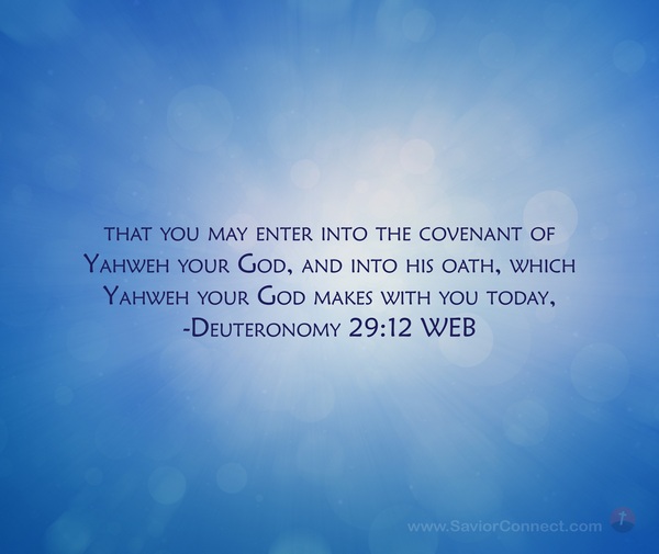 that you may enter into the covenant of Yahweh your God, and into his oath, which Yahweh your God makes with you today, -Deuteronomy 29:12 WEB