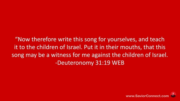 “Now therefore write this song for yourselves, and teach it to the children of Israel. Put it in their mouths, that this song may be a witness for me against the children of Israel. -Deuteronomy 31:19 WEB