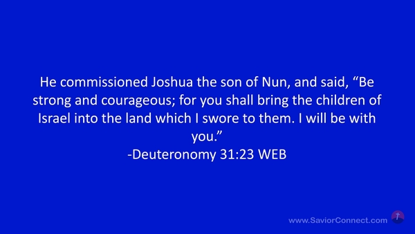 He commissioned Joshua the son of Nun, and said, “Be strong and courageous; for you shall bring the children of Israel into the land which I swore to them. I will be with you.” -Deuteronomy 31:23 WEB