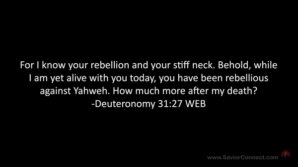 For I know your rebellion and your stiff neck. Behold, while I am yet alive with you today, you have been rebellious against Yahweh. How much more after my death? -Deuteronomy 31:27 WEB