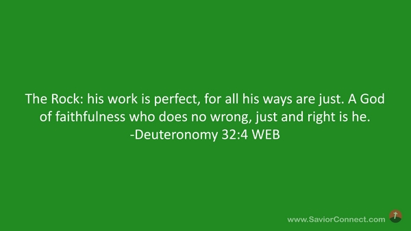 The Rock: his work is perfect, for all his ways are just. A God of faithfulness who does no wrong, just and right is he. -Deuteronomy 32:4 WEB