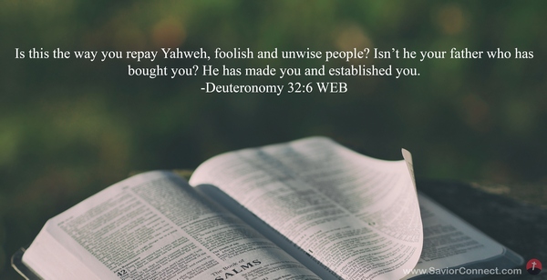 Is this the way you repay Yahweh, foolish and unwise people? Isn’t he your father who has bought you? He has made you and established you. -Deuteronomy 32:6 WEB