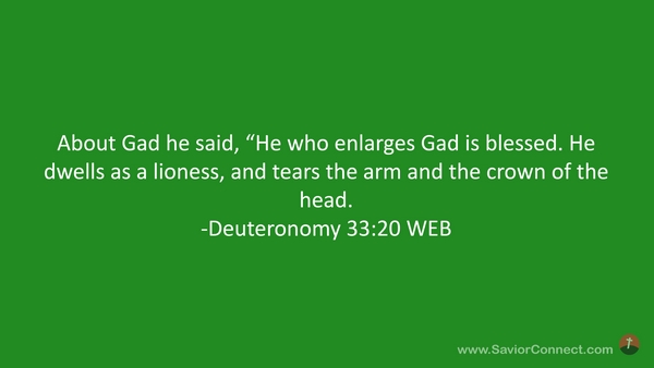 About Gad he said, “He who enlarges Gad is blessed. He dwells as a lioness, and tears the arm and the crown of the head. -Deuteronomy 33:20 WEB