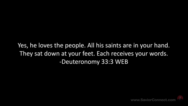 Yes, he loves the people. All his saints are in your hand. They sat down at your feet. Each receives your words. -Deuteronomy 33:3 WEB