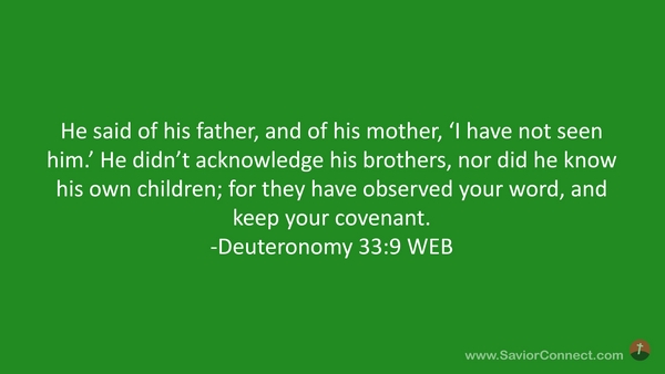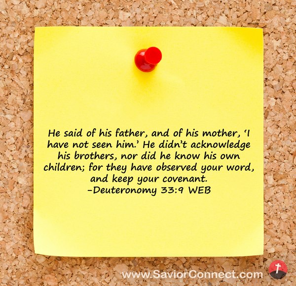 He said of his father, and of his mother, 'I have not seen him.’ He didn’t acknowledge his brothers, nor did he know his own children; for they have observed your word, and keep your covenant. -Deuteronomy 33:9 WEB